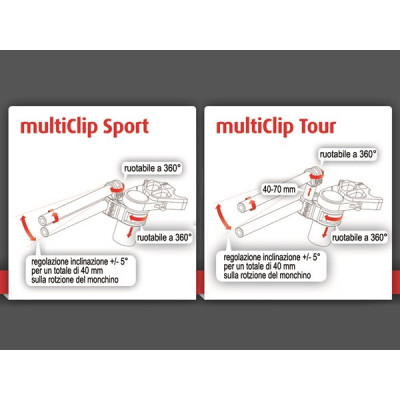 The Multiclip kit can therefore be rotated, raised, tilted, enlarged and brought closer without ever compromising any further adjustment.