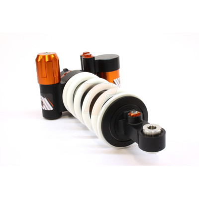 Not only leads this to stable performance but also to a longer lifetime of the shock and its oil. To create the best performance for every model we use high flow pistons, low friction seals, and dedicated shimstacks. Every shock can be opened and serviced, or tuned for the customer’s application. For all shocks there is a range of springs from softer than standard till harder.