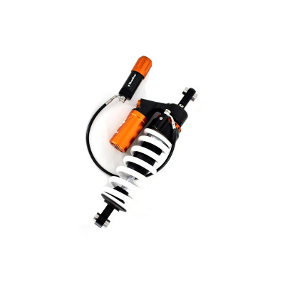 Ultimate performance shock absorber with adjustable rebound and high- and low-speed compression damping. Preload hydraulically adjustable for varying loads. PDSII anti bottoming.