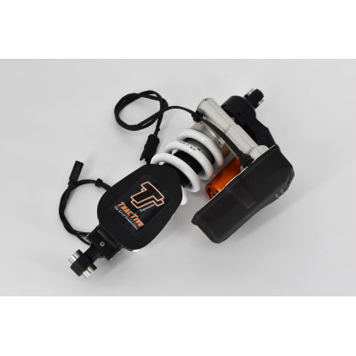 This shock absorber fits plug and play into the motorbike with the original connector. This ensures that the original controls on the handlebar remain operational. There is no need for a cancelation kit or any other modification to the motorbike or its wiring harness. The shock absorber contains the Tractive DDA damping valve (Dynamic Damping Adjustment). The motorbike’s control unit does not notice electrical differences between the original damping valve and the Tractive DDA damping valve. However, the Tractive DDA valve is more stable, has a larger adjustment range and adjusts faster than the orginal valve.