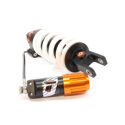 Upgrade shock absorber with adjustable rebound damping. Preload hydraulically adjustable for varying loads.