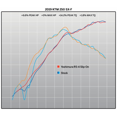 We wound up with the 250 peak HP at 6.6% and a big gain of peak torque of 14.2% The 350 was even more impressive with a peak HP gain of 10.2% and peak torque gain of 7%. The work horse for much of this performance is our RS-4 muffler. With its Poly-resonant Duplex front chamber to add overall volume, and the special stepped two-stage baffle configuration that reduces sound without restricting performance. These Austrian 250 and 350 race machines are ready for the top of the podium now! Spark arrester available separately.