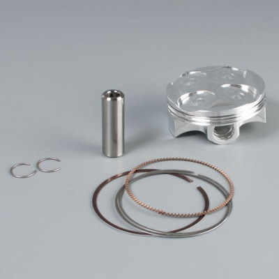 Pro Series Engine Piston Kit by JE Pistons®. "Pro Series" Piston kits are available for demanding off-road applications and feature purpose-built forging designs that reduce overall piston weight without sacrificing strength or durability. Internal and external strut braces significantly reduce stress on critical areas and remove ring groove flatness for improved ring seal during operation. Get the performance of the top engine builders like Yoshimura, with the durability required by weekend riders.