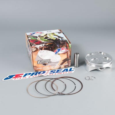 Pro Series Engine Piston Kit by JE Pistons®. "Pro Series" Piston kits are available for demanding off-road applications and feature purpose-built forging designs that reduce overall piston weight without sacrificing strength or durability. Internal and external strut braces significantly reduce stress on critical areas and remove ring groove flatness for improved ring seal during operation. Get the performance of the top engine builders, with the durability required by weekend riders.