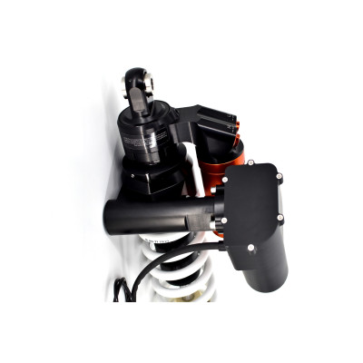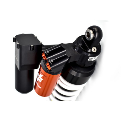 Ammortizzatore Plug & Play ad alte prestazioni con regolazione elettronica del ritorno e regolazione manuale dello smorzamento in compressione ad alta e bassa velocità. Regolazione elettronica del precarico.