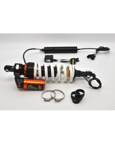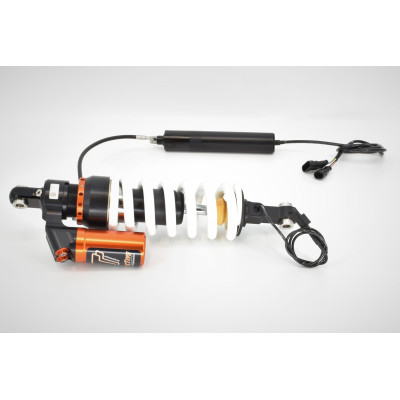 Ammortizzatore Plug & Play ad alte prestazioni con regolazione elettronica del ritorno e regolazione manuale dello smorzamento in compressione ad alta e bassa velocità. Regolazione elettronica del precarico.