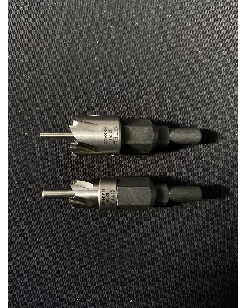 Il kit viene fornito con due diverse dimensioni dell'utensile, 14 mm e 20 mm. Entrambi con un perno interno come scopo di centraggio.