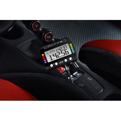 Si accende in pochi secondi e calcola i tempi sul giro con al massimo 2 centesimi di secondo di tolleranza, il display può essere retroilluminato nel colore preferito tra sette disponibili: bianco, azzurro, verde, giallo, rosso, viola, blu