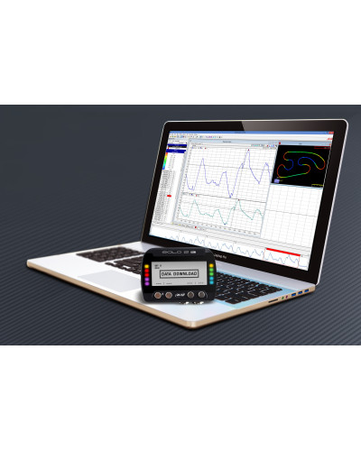 laptimer GPS con database piste incorporato e data logger collegabile alla ECU, piattaforma inerziale interna tri-assiale +/- 5G accelerometro + giroscopio triassiale + magnetometro triassiale, memoria 4 GB, batteria ricaricabile al litio, supporto magnetico, collegabile alla ECU via CAN/RS232 e OBDII-K line, IP67
