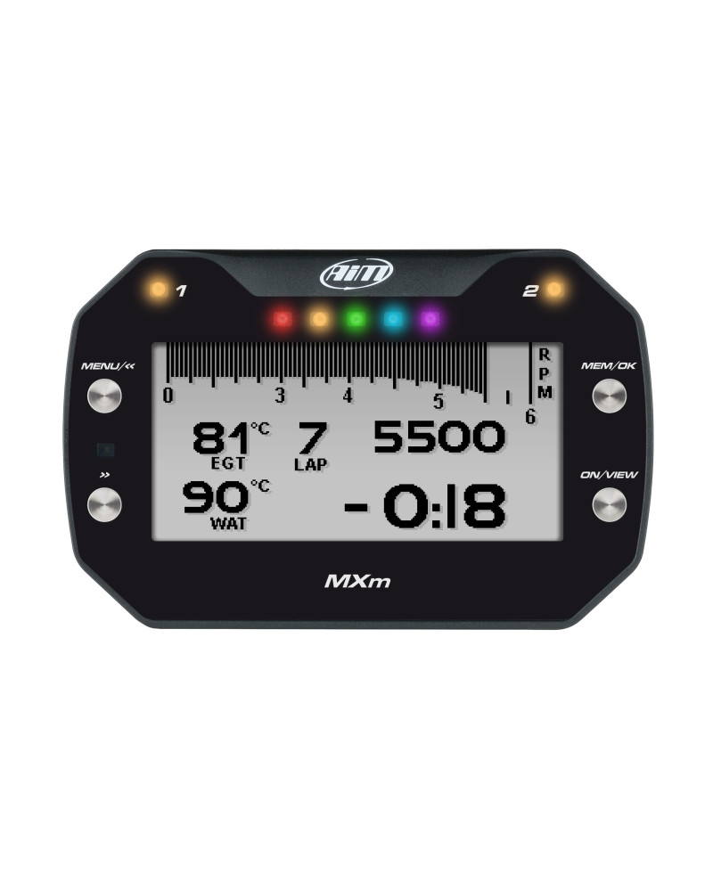 MXm è il dash-logger compatto di AiM che fornisce ai piloti tutte le informazioni di cui essi necessitano dentro e fuori dalla pista, calcolando e mostrando in tempo reale quei dati fondamentali come i tempi sul giro, gli RPM, la velocità, le marce e molto altro ancora. Oltre a ciò MXm contiene al suo interno una piattaforma inerziale a 9 assi, grazie alla quale lo strumento è in grado di fornire al pilota un’acquisizione telemetrica completa.