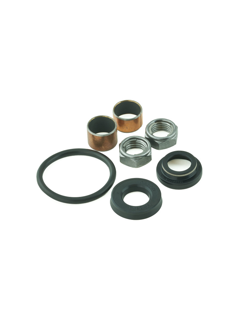 Il kit di revisione K-Tech per ammortizzatore comprende: paraolio, parapolvere, boccola di scorrimento, la maggior parte degli o-ring necessari per la manutenzione dell'ammortizzatore e un nouvo dado autobloccante del pistone per una maggiore sicurezza durante la revisione dell'ammortizzatore.