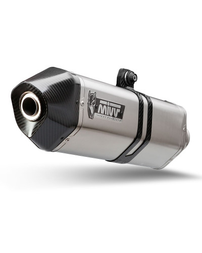 Realizzato con corpo in acciaio inox spazzolato e con coppa e fascetta di ancoraggio in carbonio, lo scarico è di forma esagonale ed è dotato di dB-killer estraibile.